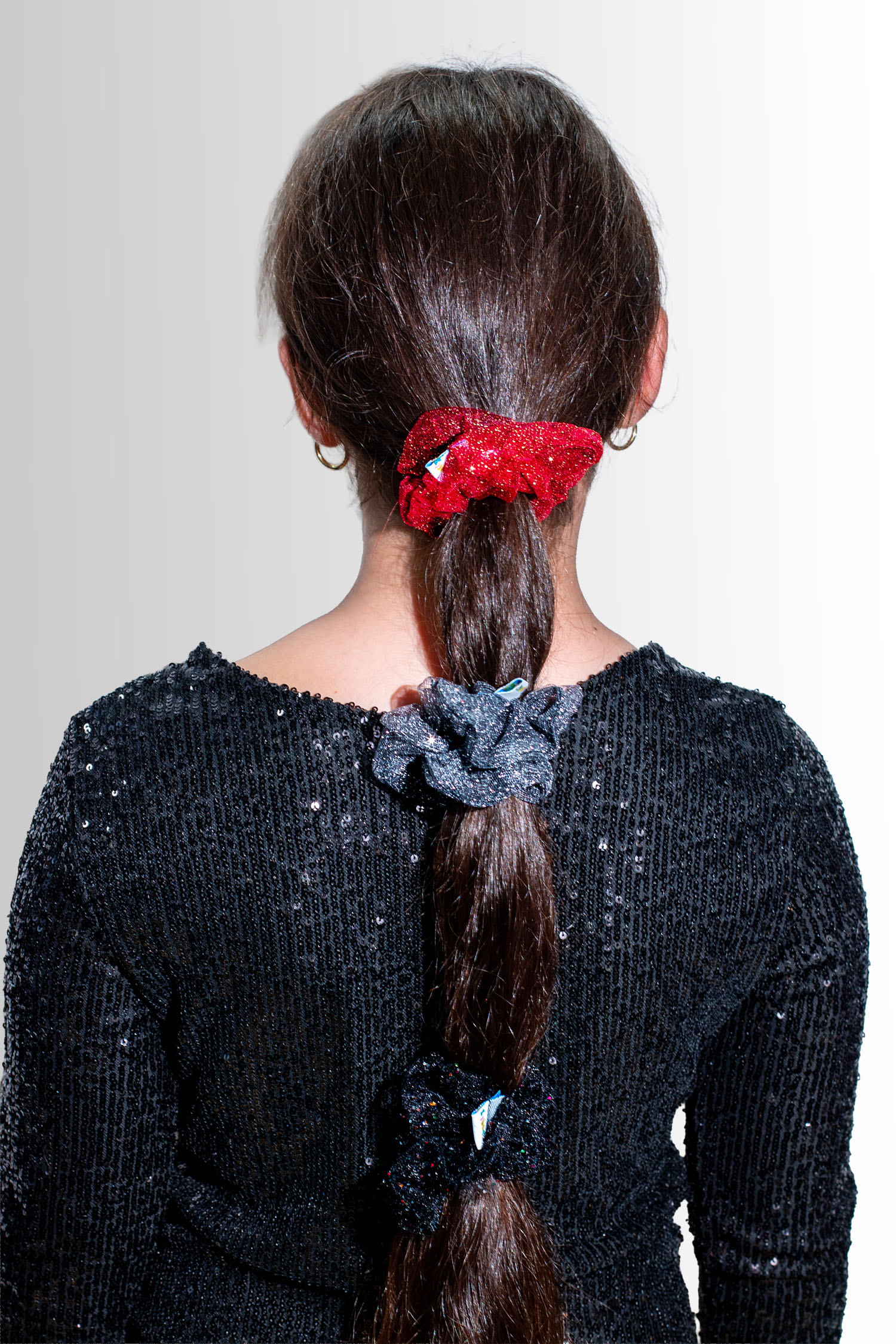 The Frost Glow Scrunchie brings all the shimmer with its sheer tulle and silver sparkle. Light as snow and full of shine, it’s the perfect piece for festive nights, winter birthdays, or just feeling fancy any day.